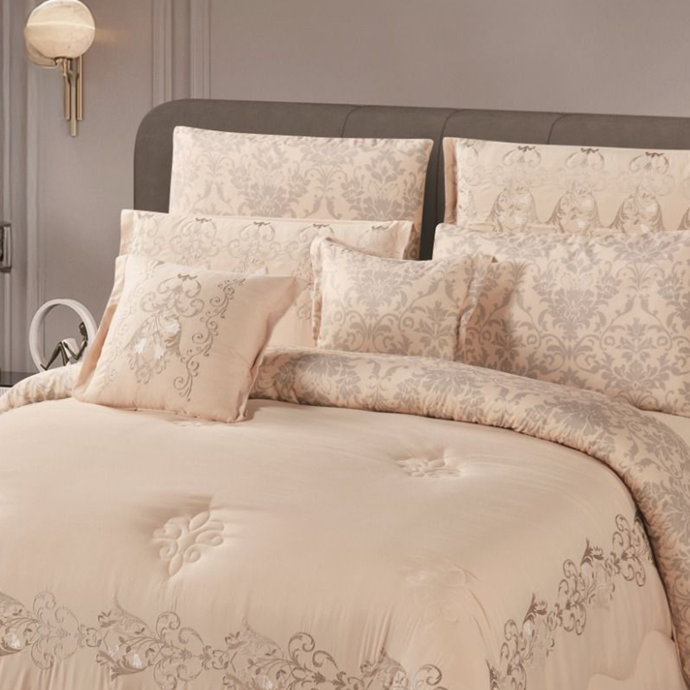 يتألق مفرش لونا بتصميم يمزج بين سحر الفخامة وبهجة الألوان، ما يضفي لمسة فريدة و مميزة على غرفة نومك . تم صُنعه بدقة من المايكروفايبر عالي الجودة، ما يجعله لطيفًا على البشرة ويمنح تجربة نوم لا مثيل لها، فهو يُسهم في تنظيم درجة الحرارة وضمان ليالٍ هادئة ومريحة. لا يُقلّ حشوه عن فخامته، فهو متين وثابت ويبقى جميلاً وعملياً حتى بعد الغسيل المتكرر، مما يعزز شعورًا بالاسترخاء والراحة ويعمّق جودة النوم. بكل بساطة، إنه الاختيار المثالي لمن يريد ان يجمع بين التميز و الراحة في وقت واحد
