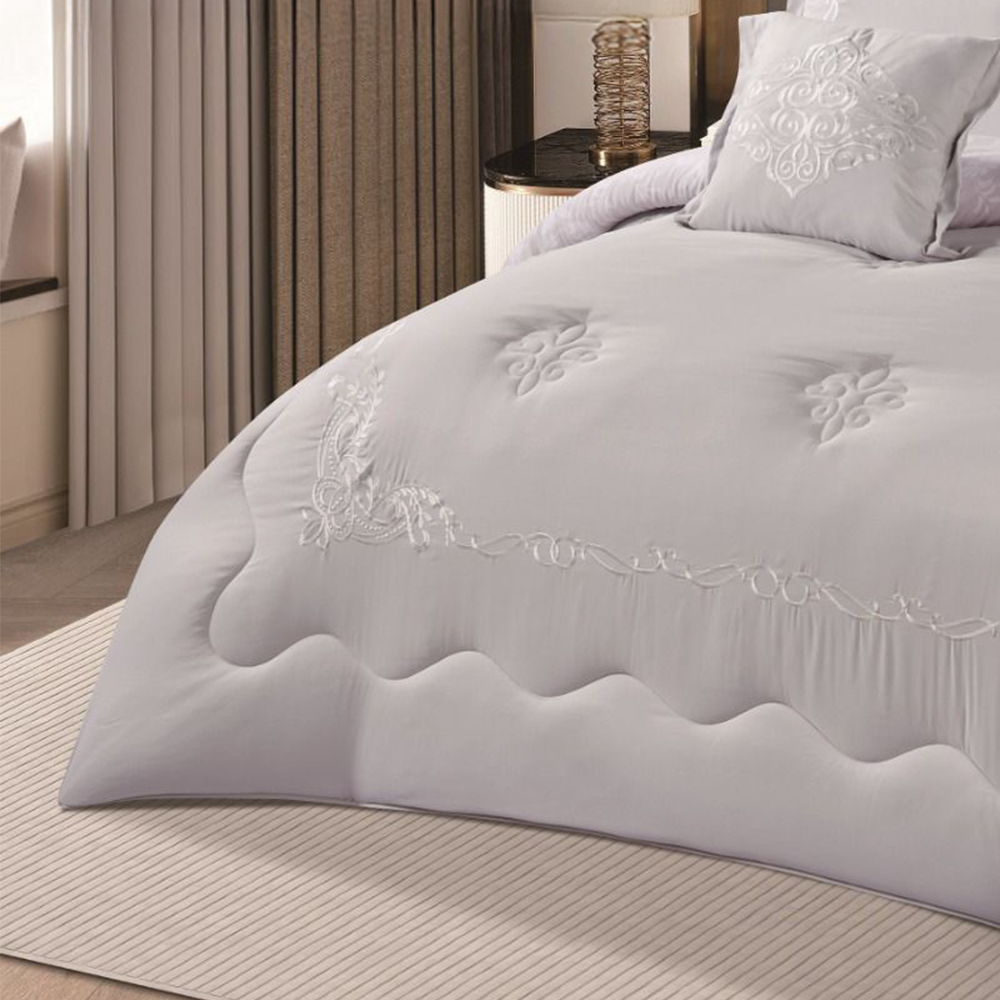 يتألق مفرش لونا بتصميم يمزج بين سحر الفخامة وبهجة الألوان، ما يضفي لمسة فريدة و مميزة على غرفة نومك . تم صُنعه بدقة من المايكروفايبر عالي الجودة، ما يجعله لطيفًا على البشرة ويمنح تجربة نوم لا مثيل لها، فهو يُسهم في تنظيم درجة الحرارة وضمان ليالٍ هادئة ومريحة. لا يُقلّ حشوه عن فخامته، فهو متين وثابت ويبقى جميلاً وعملياً حتى بعد الغسيل المتكرر، مما يعزز شعورًا بالاسترخاء والراحة ويعمّق جودة النوم. بكل بساطة، إنه الاختيار المثالي لمن يريد ان يجمع بين التميز و الراحة في وقت واحد