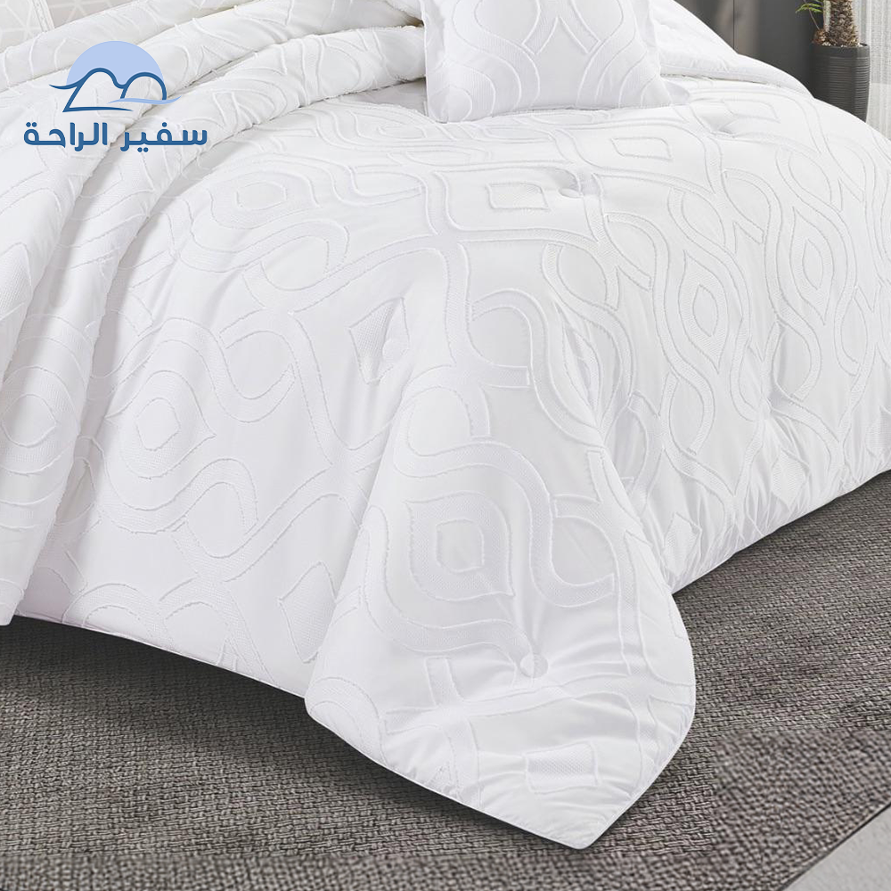 مفرش صيفي فخم بملمس ناعم وتطريز أنيق يضيف فخامة لغرفتك ، بخامة المايكروفايبر المثالية لأجواء الصيف