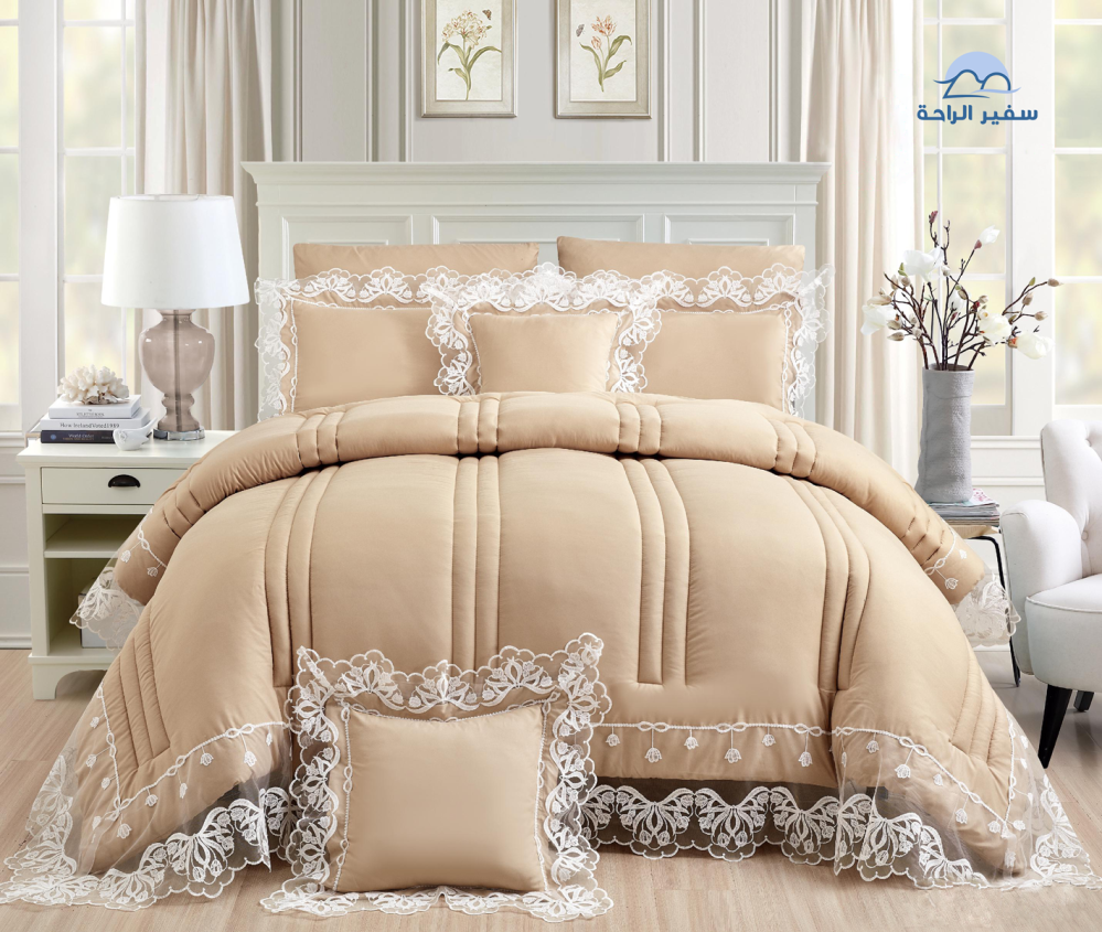 اكتشف مفرش لولو الفاخر من سفيرالراحة، المصمم ليكون الخيار المثالي للعرائس والباحثين عن الراحة والفخامة في تفاصيل غرفة النوم.