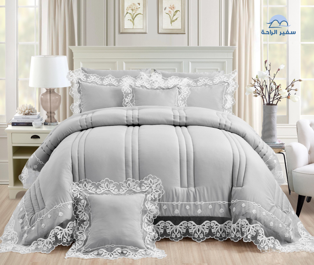 يتميز هذا المفرش بخامة مايكروفايبر فاخرة، مزينة بدانتيل أنيق يضفي لمسة من الأناقة والرقي، ليمنحك تجربة نوم مميزة.