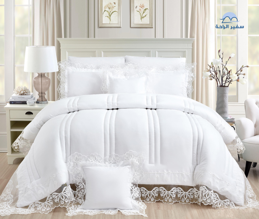 اكتشف مفرش لولو الفاخر من سفيرالراحة، المصمم ليكون الخيار المثالي للعرائس والباحثين عن الراحة والفخامة في تفاصيل غرفة النوم.
