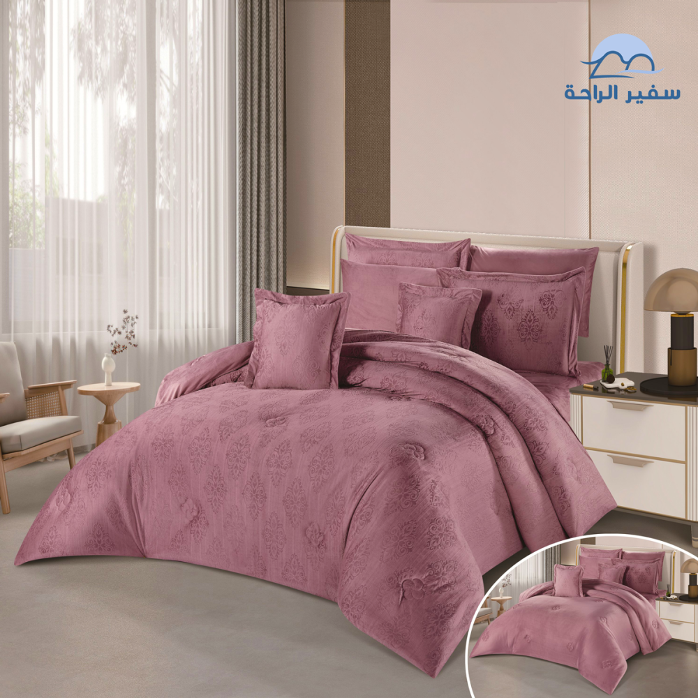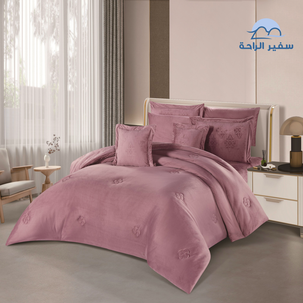 مفرش لمسة شتاء مزدوج 8 قطع يأتي بوجهين ( وجه محفر مع وجه سادة )