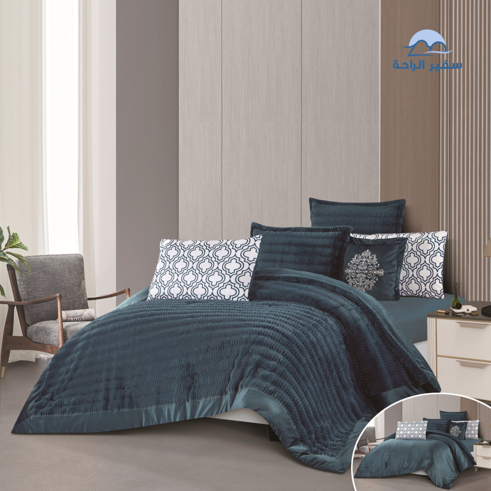 تمتع بالراحة المطلقة مع مفرش ليانىة الشتوي، المصنوع من خامة المخمل الناعم وتصميم الفرو المحفور الذي يضفي لمسة فخامة استثنائية على غرفة نومك.